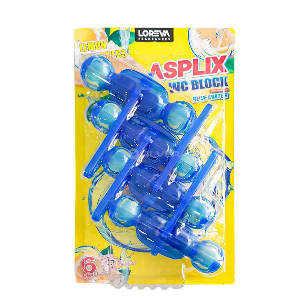 6-эффективный туалетный блок для унитаза Asplix "Лимонная свежесть", благодаря сильнодействующим компонентам своего состава обеспечивает активную очистку и поддержание гигиены в туалете. Произведено в Турции