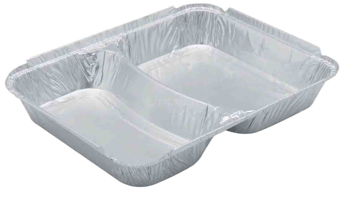Алюминиевые контейнеры 2 секционный (формы) предназначены для заморозки, хранения, транспортировки и приготовления продукта. Температурный диапазон от -40С до + 280С, могут быть использованы при разогреве продукции в микроволновых печах и духовых шкафах.