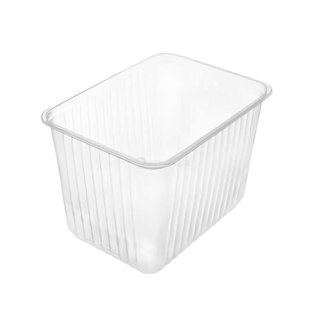 Пластиковый, прозрачный контейнер для продуктов или блюд. Вместительность с объёмом 2000 мл. Популярны у ресторанов быстрого питания, столовых, мобильных кофеен и кафе, как для еды на вынос, так и для хранения продуктов. Контейнеры успешно используются в супермаркетах и магазинах при продаже готовых блюд, закусок, салатов, выпечки на вынос. Идеально подойдут для организации пикника и барбекю.