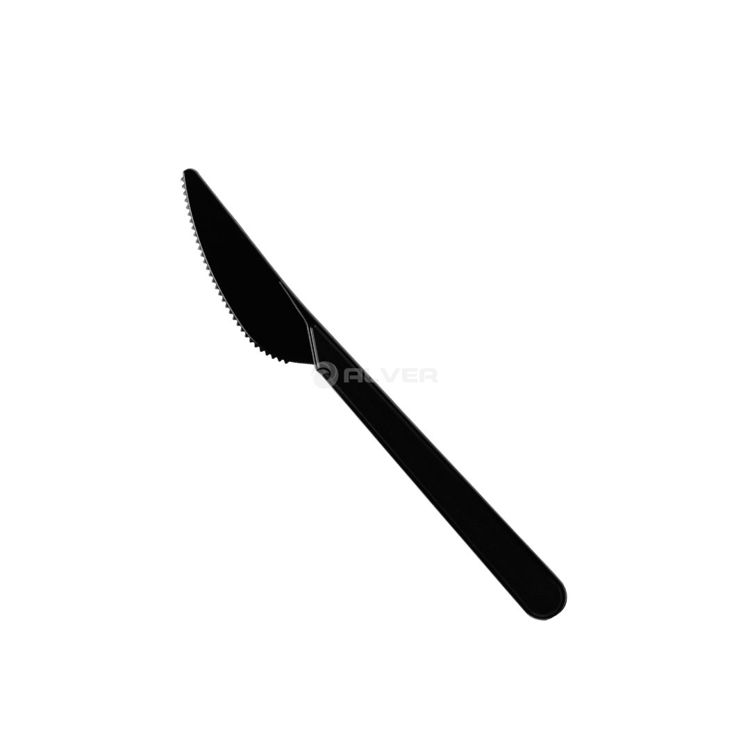 Одноразовый нож черный цвета. Длина пластиковый нож 180мм. Черный пластиковый нож имеет превосходное качество. Неделимая пачка 50шт