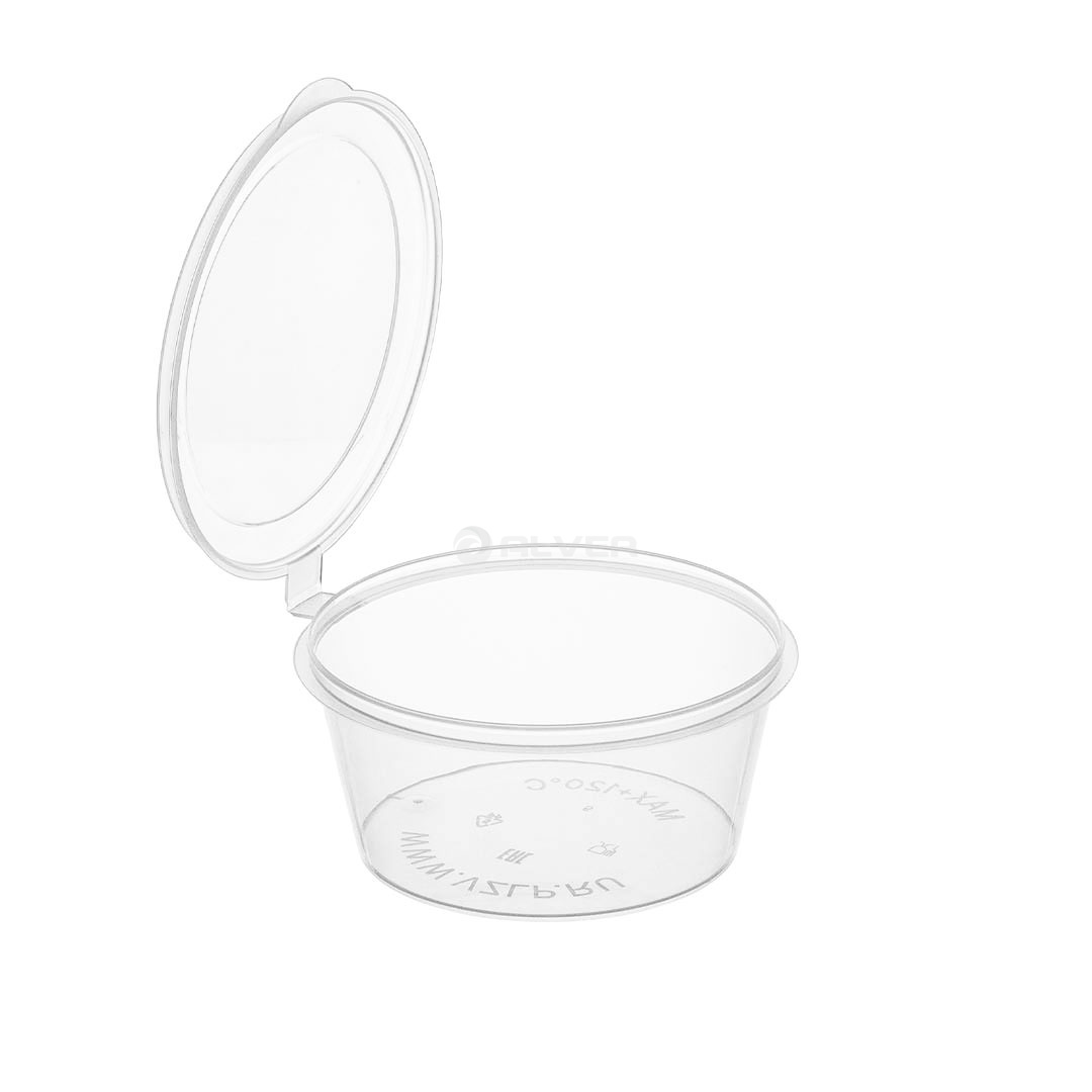 Соусник одноразовый пластиковый прозрачный с верхним закрытием крышки. Объемом 50мл. Материал ПП.