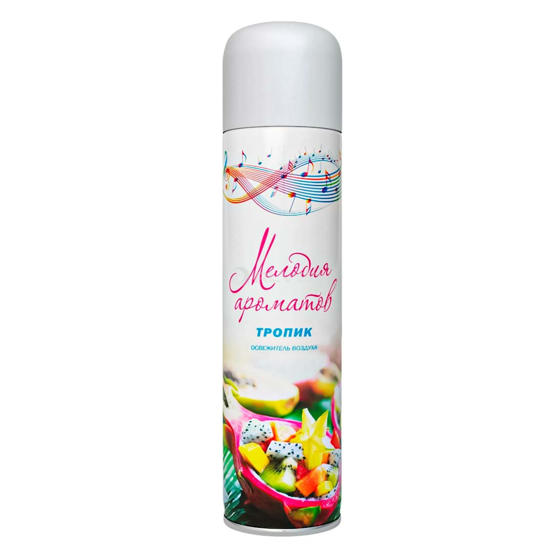 Освежитель воздуха "Тропик" 285 мл– обладающий натуральным ярким ароматом из серии качественных освежителей воздуха “Мелодия ароматов”. Освежители воздуха этой серии создадут ощущение свежести и чистоты на длительное время. Выбирайте из разнообразных ароматов: "После дождя", "Зеленое яблоко", "Морской" и многое другое. Попробуйте серию освежителей воздуха “Мелодия ароматов” и порадуйте своих клиентов приятным запахом!